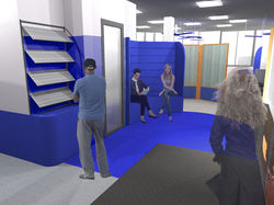 ![]() Vue d'ensemble des 180 m2 d'aménagement | ![]() Panneaux acoustiques dans l'open space |